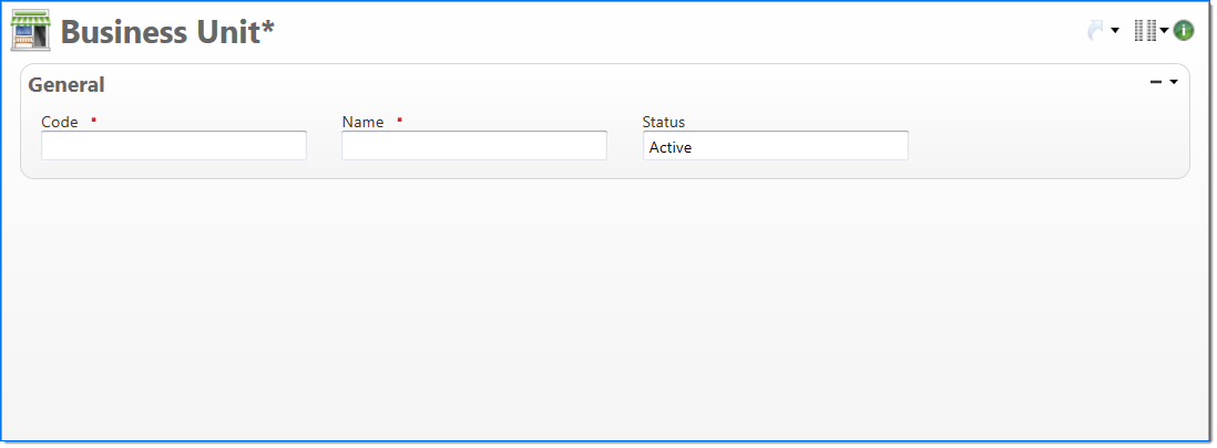 Code | Enter a unique code for the business unit. Once a code has been entered and submitted, it cannot be changed. |