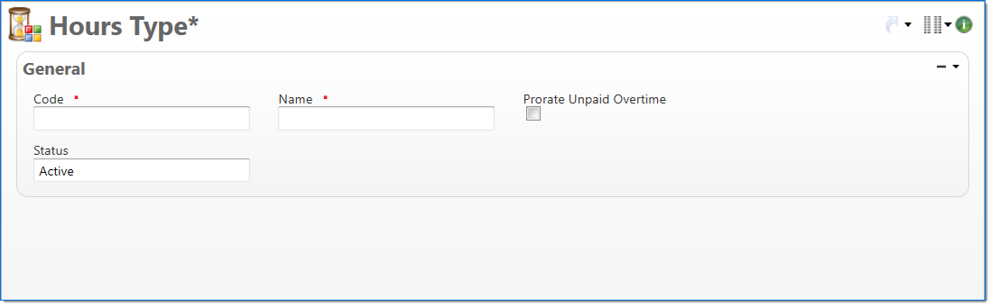 In the General area, enter hours type information.