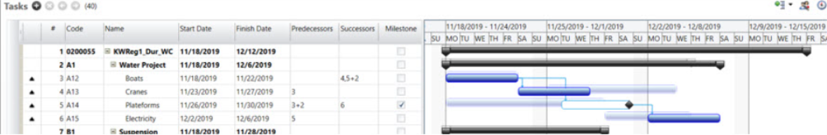 ) icon to the left of the name. For more information about the variance level, see Project Controls in