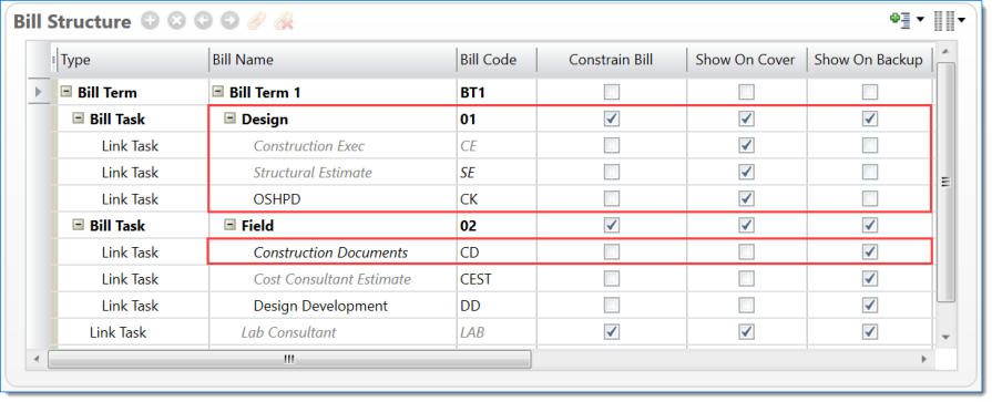 Show all lines for tasks from this bill term (tasks linked in bill structure) |