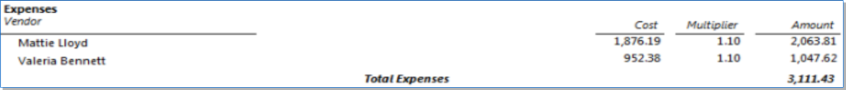Displays Expense Cost Rates and Multipliers on both the Prebill and Final Bill -