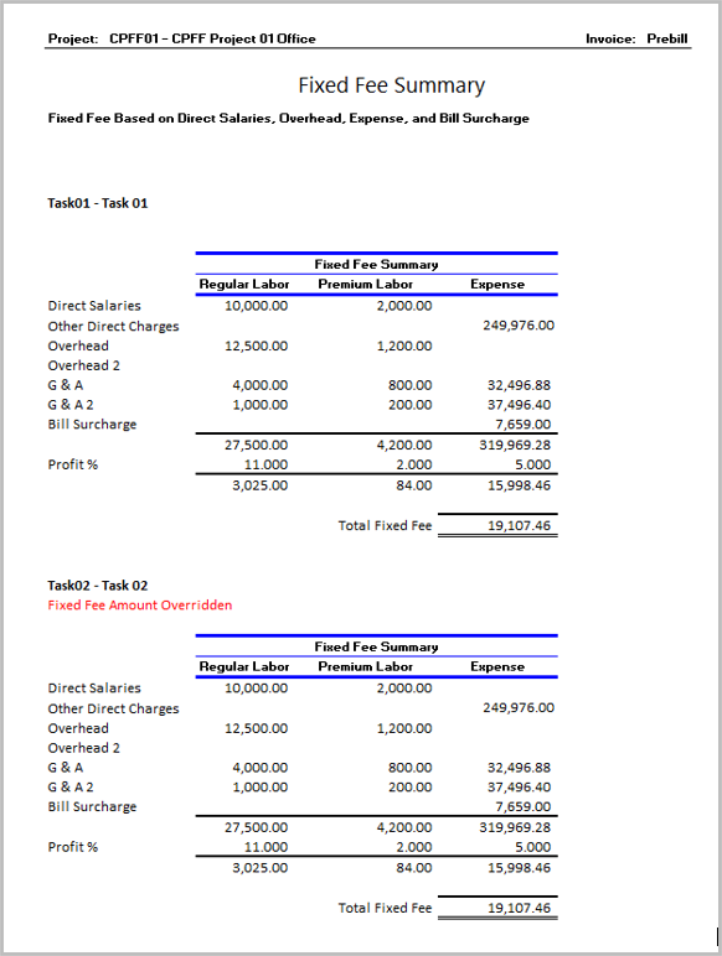 Override for Fixed Fee % by Bill Task Attribute: BillTask |