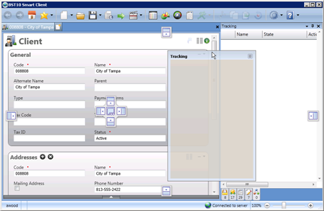 Various docking controls display on the screen. These controls move and adjust based on where you drag the tab on the screen.